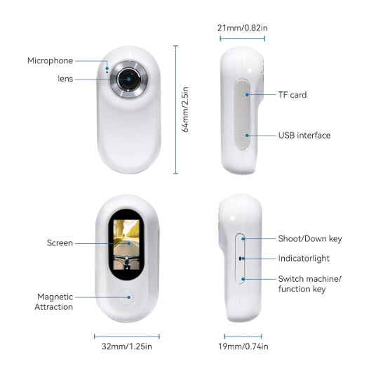 Clip-on mini camera for adventures, travel, DIY projects, biking, security, and hands-free filming. Attach to gear, bags, or clothing to capture life from unique angles anytime, anywhere.